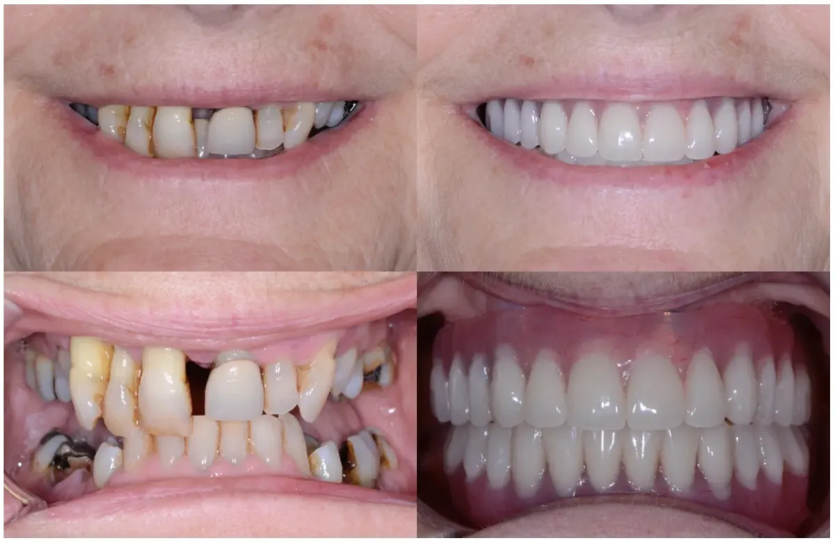 Full arch dental implants provide patients with brand new teeth by utilizing a permanent, titanium-reinforced bridge that can be secured with four to six dental implants. This allows us the flexibility to strategically place the implants in the areas in which the bone is most dense, reducing our need for bone grafting and other supporting treatments. Please keep in mind that we can help people in nearly any situation because of our team approach to Full Mouth Implant Cases.
